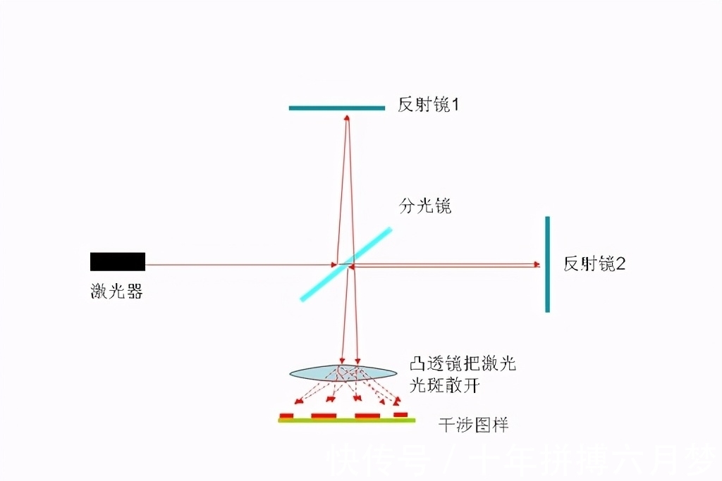 光源产生光线,射向分光镜,分光镜会把光线分成垂直和水平的两束光线,再由全反射镜反射回来,进入干涉仪产生干涉图样,